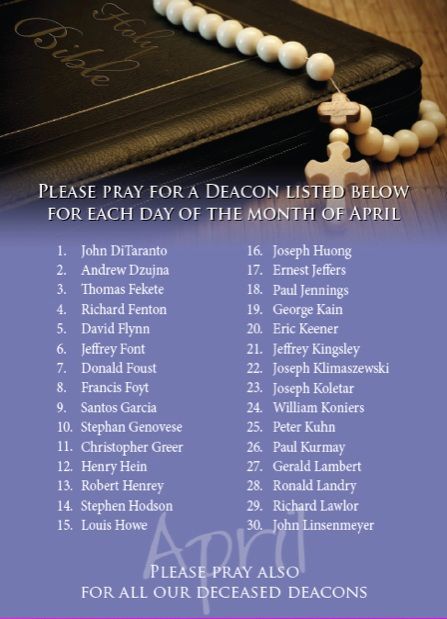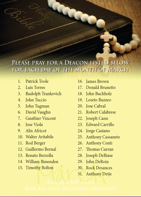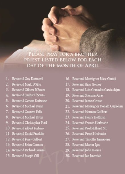 Below are the current month's prayer cards, each containing a list of priests and deacons
